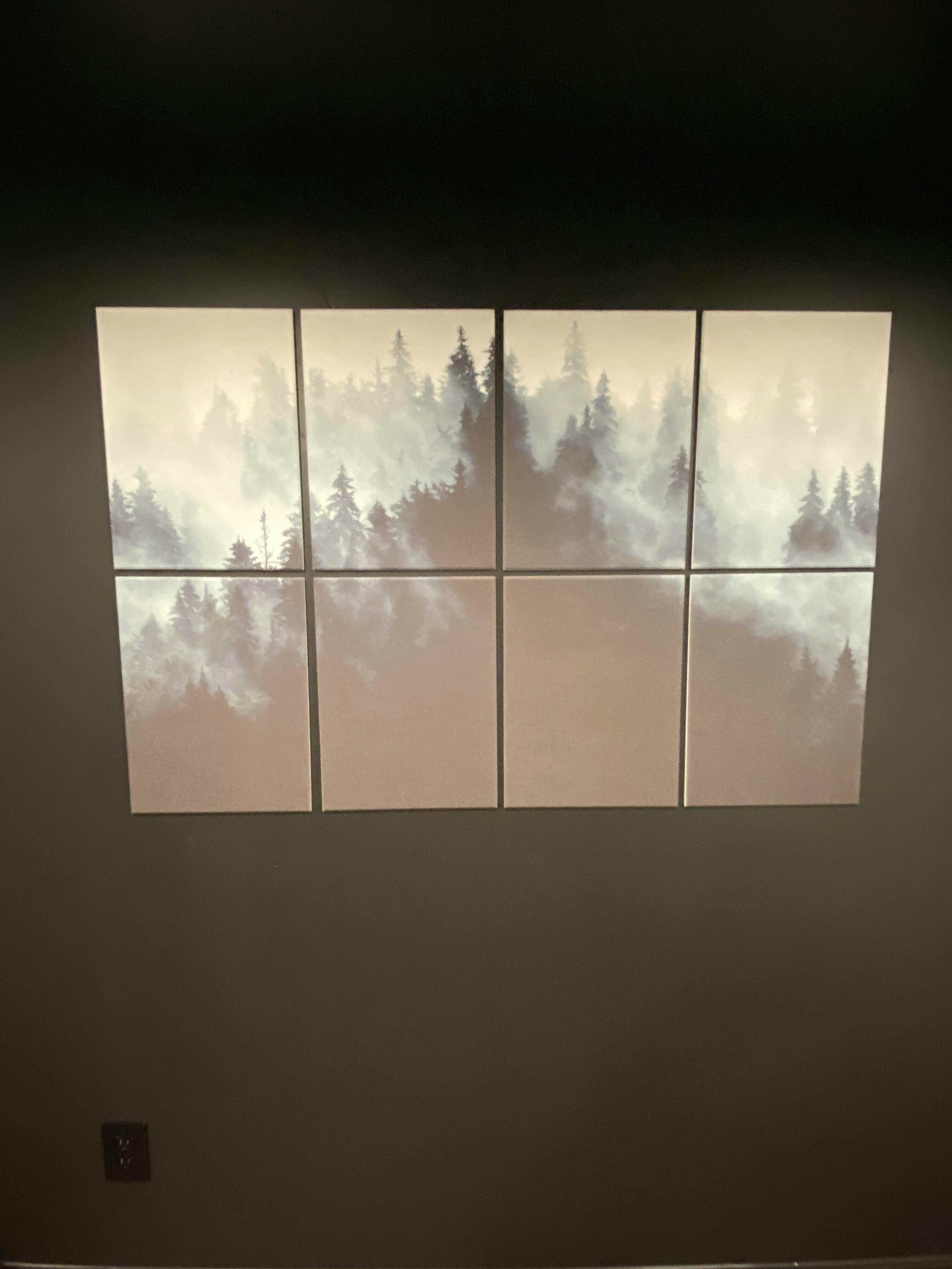 The picture is great. Panels are very thin. Wife likes it so much she asked that I hang it in the living room instead of basement like I originally planned. Don't know if it's doing much acoustic help but it looks great as decoration. Installation was fairly simple.