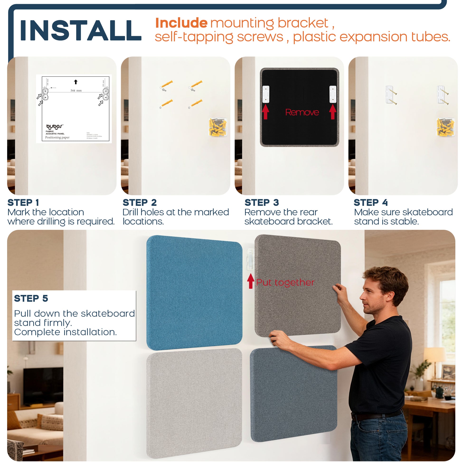 - 【Easy Installation】 Each 23.6” x 23.6” x 1” fabric acoustic wall panels for walls include sturdy hanging hardware for secure wall mounting, ensuring a seamless and stable setup.