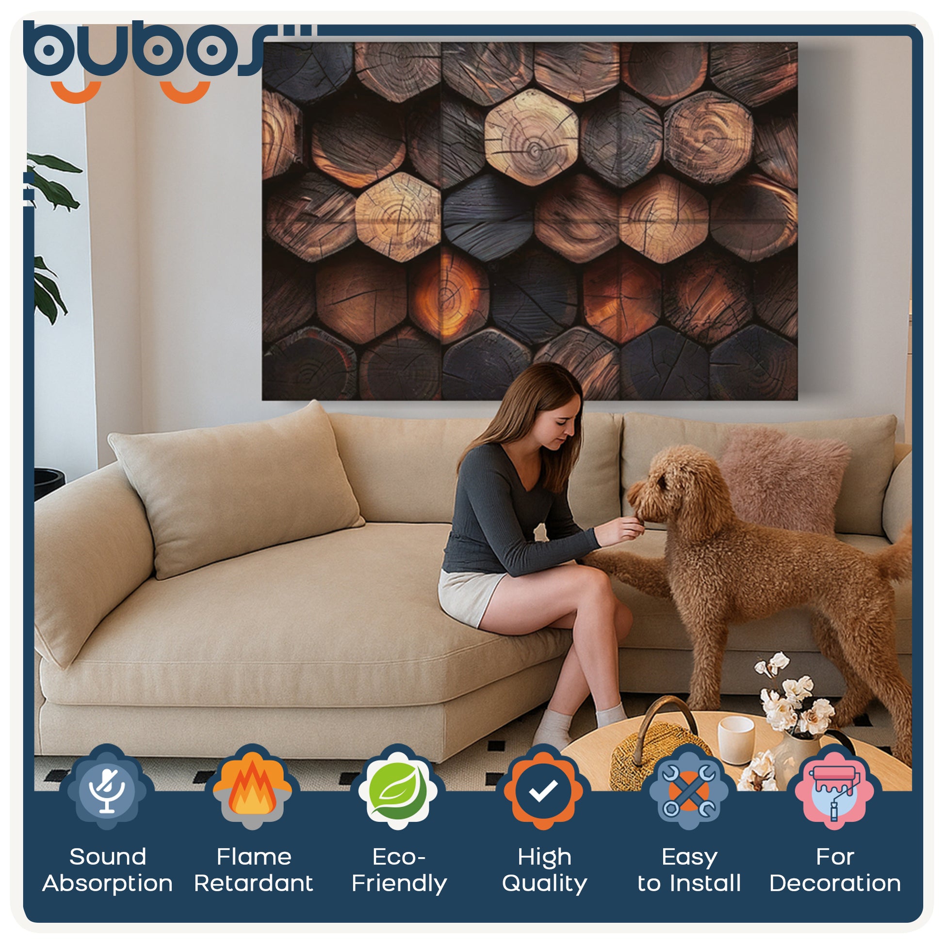 Available in different styles, bubos acoustic sound panels can be hung in your bedroom or living room as a decoration to light up your dull walls, bringing a different visual appeal! Rich and diverse patterns are compatible with any scene.