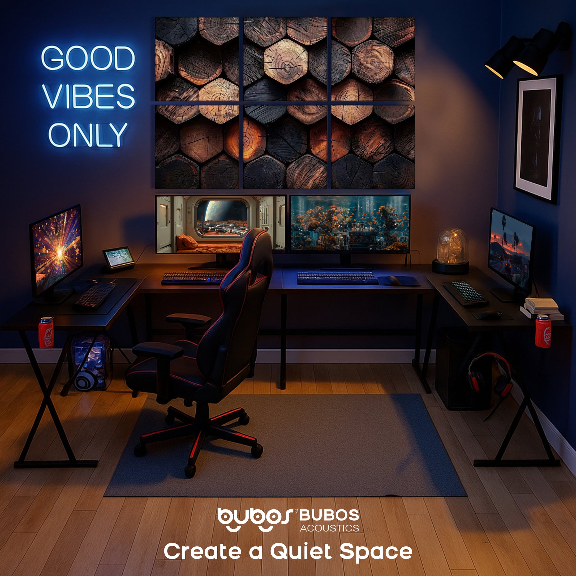 BUBOS 6 Pack Art Acoustic Panels Soundproof Wall Panel,23.6X23.6 Inches,Timber Code