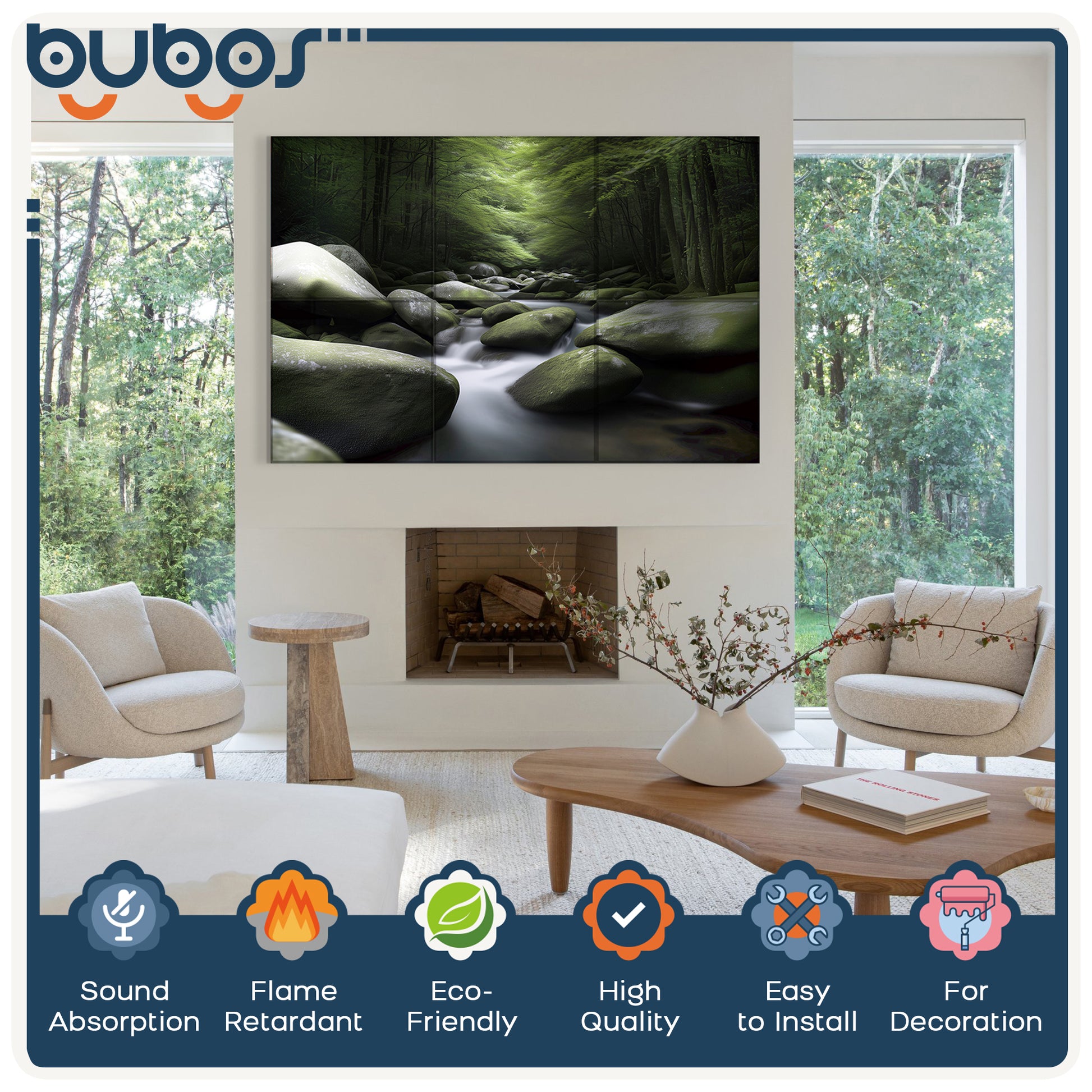 Available in different styles, bubos acoustic sound panels can be hung in your bedroom or living room as a decoration to light up your dull walls, bringing a different visual appeal! Rich and diverse patterns are compatible with any scene.
